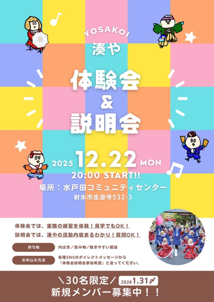 湊やで演舞できる最後の一年を、ぜひ私たちとともに駆け抜けていただけましたら幸いです。